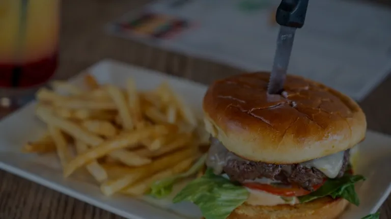 a burger, fries, and beer