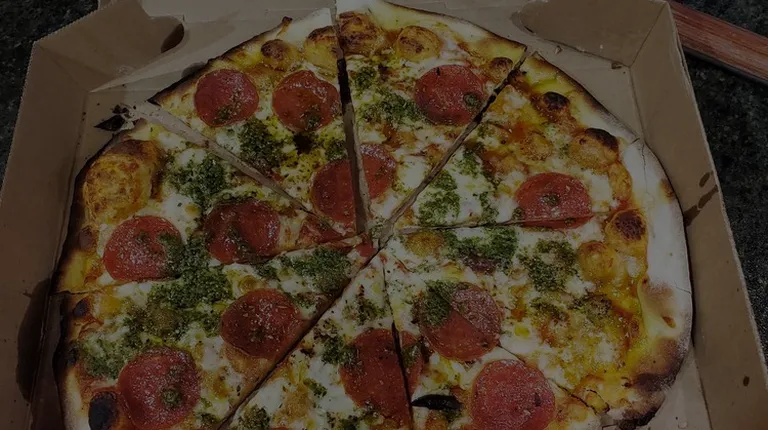 Great wood fired pizza. We ordered two pizzas, The Goombah and a Hula Pie for take out for lunch. They were ready in 12 minutes for pick up. The toppings were reasonable for the size and type of pizza. The pizza was hot and baked as a wood fired pizza should be. The crust was thin and the edges were crisp. If you are looking for the heavily topped regular or thick breast crust style pizza, this isn't your style of pizza. This is well made, thin crisp crust wood fired pizza.