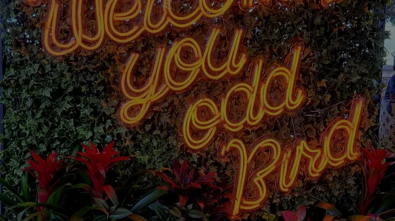 New Rare Bird sign and cocktail.