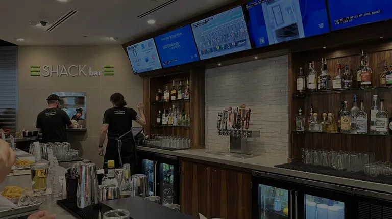 This is the only Shake Shack location with a full bar and food service at the bar! There are only 12 seats at the bar, so it is often full. And when it isn't full the bartenders often go try to recruit folks from the line to come fill up empty seats. But if you can get a seat at the bar this is a fantastic option. No waiting in line, and a full bar to get your favorite beverages along the way.Admittedly, the food wasn't quite as good as the typical Shake Shack, which isn't a surprise at all considering this is an airport location. The food was still good, and the hot dog was very good, but the burger wasn't quite as good as I've had at other locations.The staff was excellent. They clearly have fun working here, were very social, and eager to provide great service. Chatting with the staff was one of the best parts of getting a seat at the bar (along with the beer, of course).I love that you can skip the line, order and eat food at the bar, and enjoy full bartender service the entire time. Whenever I have a layover in Denver, I am absolutely trying to score a seat at the bar here!If you don't get a seat at the bar you can still order drinks from the bar and sit in the dining area. You'll just have to wait in line to get your food, because you can only order food at the bar if your entire party is sitting at the bar.