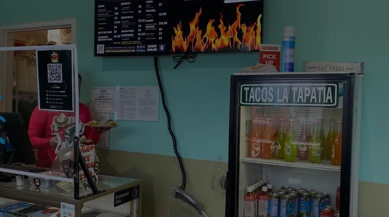 a tacos la tapatia sign on the sidewalk