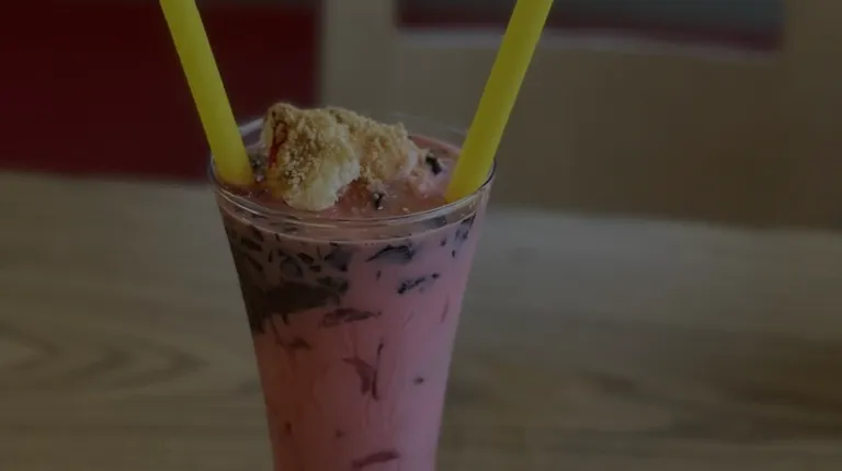 Burmese milkshake / ice salad/ falooda! My favorite dessert, rose drink with vanilla ice cream