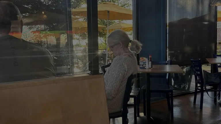 Employee bussing a table.