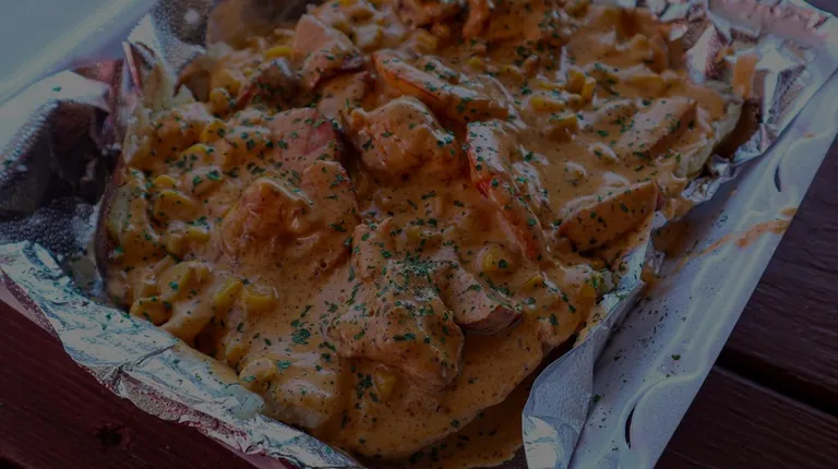 I ordered "The Cajun" which came with shrimp, fried chicken, andouille sausage, corn and Cajun cream sauce. Great flavors and huge portion. I would give them a 4/5 as the shrimp was too salty.