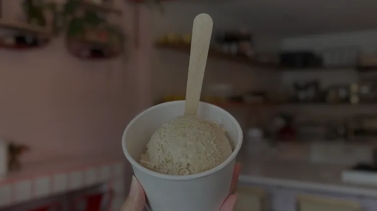 Such a cute coffee shop & ice cream parlor with lively vibes -- counters with red & white tiles, hanging plants, bright red counter chairs. It's a small but cozy space with friendly baristas. I've enjoyed lounging here as well as grabbing a coffee to go and heading over to the lake.I recently tried their blueberry latte, a popular option! I loved the innovative flavor and had to try it, although it was a little heavy on the blueberry for me. It also came with a mini scone on top -- what a cute touch!Lovely spot to catch up over a coffee. Can't wait to be back to try some of their bites, wines, and ice cream as well.