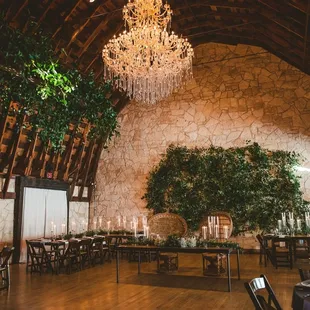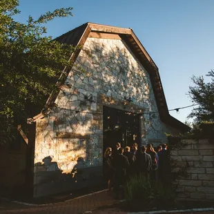 When my (at the time) fiance and I picked a wedding date, we had no idea how popular October weddings are in Texas! We thought 6 months to plan a wedding was just right, but then it quickly turned into a frantic search for a venue that wasn't already taken on our date. Luckily, I found the Brodie Homestead through the Allan House. (Same owners.) At first I wasn't seriously considering it, even though the pictures of the interior were lovely. (It was a bit pricey.) However, it had so many pros that we started to really consider it. Being indoors with air-conditioning was a huge plus! And when my mother saw it and loved it too, it was a done deal.The staff was easy to talk with and I communicated mostly via e-mail. They were usually pretty quick to respond. By the time of my pre-event walk-through, I was mostly in communication with Marissa. She was fun and answered all of my questions. The Brodie Homestead will supply the chairs and tables, but that is all. Finding our own linens was only as difficult as choosing a style and color (I was torn between purples). They require a catering vendor who will provide full service, which includes clean-up at the end of the night. But we were going to find one that did so anyway. As for the rest of the vendors, Brodie gives you full freedom to choose whomever you want. It used to be an old working horse barn. The exterior still holds that old charm, but the interior is amazing. It smells of wood when you walk in, and then you see the enormous space with high ceilings and wood beams, and a stone wall at the far end. And you'll be dazzled by the huge chandeliers. It made for the best mood lighting during our reception. And they can be turned up really bright if needed.We had the room flipped from ceremony to reception, and while that happened, they had a curtain they closed that cuts the space in half. One side was cocktail hour while the other side flipped to reception. It had space for everything - the tables, buffet, DJ, cake table, gift table, cocktail tables, bar... you name it. And upstairs are two small rooms for the bride and groom to get ready in, each with their own bathroom.It was stunning once everything was in place - the flowers, tables, the lighting, etc. We couldn't have found a more perfect place to get married!