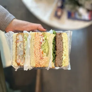 Popped in here for a quick brunch sando before heading over to see the 2024 Count of Monte Cristo which was being shown at the Regal Cinema nearby.Choo crafts edibles stuffed between layers of bread, as well as flesh from the sea layered atop morsels of rice. They come packaged in wooden boxes with plastic lids, secured by rubber bands. Soy sauce is dispersed via individual droppers; clearly a tremendous amount of preparation goes into this culinary operation--quite a large variety available, in pretty large quantities daily.How large is a Sando? Imagine a square slice of bread cut into thirds. Each sando box contains exactly one thick contents worth of sandwich; of course there's no skimping on the filling here. The bread itself is slightly sweet.Service is expedient, friendly, and they pack everything to go for you, including stapling a paper bag.Seating inside is available for roughly 10 people. An additional counter seating is available outside.The display case is vibrant and colorful; staff come and actively adjust the current inventory to maintain that magic you get when waiting in line and deciding exactly what to get.Certain sandos and omakase boxes can only be pre-ordered. But generally they have a pretty large inventory of options, including variety packs of sandos.I'll be trying out their sushi in the future, after trying out each variant of sando they offer.