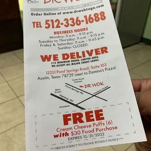 I constantly look for good Chinese in Austin, having eaten at countless places. With the advent of the corporate Chinese food options (P.F.Changs, Pei Wei R.I.P. Masala Wok and Panda Express) looking for the good 'ol days of independent Chinese restaurants such as back in the 80's and 90's - when btw there were as many or more Chinese than Mexican restaurants in Austin - has been difficult. What a pleasant surprise to find Dr. Wok! My go-to test dish is Orange Beef, and both times it was, most importantly, consistent, and was crispy, tangy, and spicy, with add-ins accepted and incorporated nicely. I'll be back soon for other dishes and look forward to the experience. Service was pleasant, the Owner rang me up both times and was very accommodating. Food came within about 12 minutes, and what you get as far as quality and quantity is well worth it. Ambiance, well, Dr. Wok is currently to-go only, hope that changes. The Owner gladly brought my food to the car. Go! Try it!