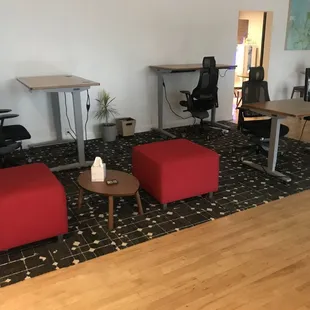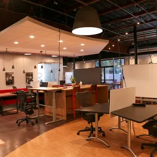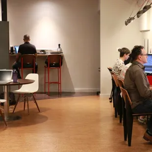 The owners are very nice and accommodating. The free iced coffee and snacks are great. It's nice and quiet with glass conference rooms on the side if you need to have a short meeting. Love this place. Also, breakfast all day place just a few hundred yards away...