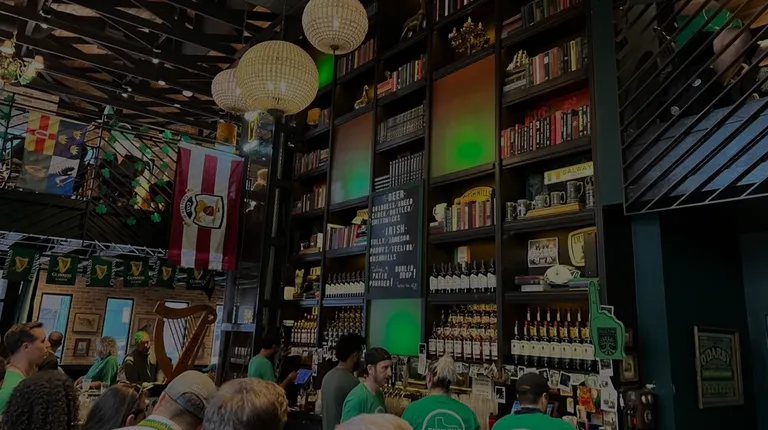 Luck of the Irish It was St. Patrick's Day and search all over downtown Austin for green beer until a bouncer said come on in we have it. I never been inside Foxy's Proper Pub where from outside looked small but it rather big inside. One problem before entering was it looked packed but decided to venture inside like an explorer. I was navigating shoulder to shoulder through people mostly 25 years younger than me where most were holding cups of shiny green beer. I ended up at a long bar under a chandelier made of green Jameson bottles. This room resembled a two story library out of Harry Potter. Lots of of iron, wood, and character, but no wands.As I finally got the attention of one of the many bartenders serving thirsty folks I got my green beer and those behind me were marveling at it. It tasted like a golden ale beer and enjoyed it.Besides green beer looks like on a normal day Foxy's serves a very wide range of authentic Irish mixed drinks, beer and food. It's really a cool place to checkout where I was impressed by what I could see in the massive crowd. There was patio, bar and indoor balcony seating. There was also what looked like a private area seeing a few going through a curtain unless it was the green beer talking. In hindsight the green beer made my day in celebrating St. Patrick's in style.