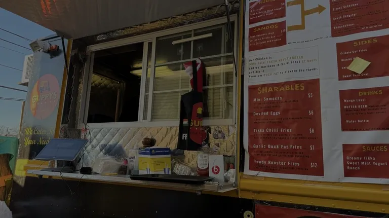 Went here with a couple friends to try. It's a little bit tucked away in the back so not with the other food trucks nearby. It's right next to the zucchini kill bakery.It's all fusion of Indian street flavors meet spicy fried chicken. I got the street Szechuan sando, garlic duck fat fries, and a mango lassi. The flavors worked really well together and the chicken was nice and juicy. The mango lassi creamy and the duck fat an extra edge to the fries.Service was great and the guy who runs it was really helpful in deciding what to get and making you feel welcome.Since it's inside another outdoor bar there is a lot of outdoor seating so great to hang out when the weather isn't super cold. I will say this had lots of sauce so things soaked in pretty quickly. Definitely eat when you get it and don't let it sit too long before tasting otherwise you may have some soggy bread. 10/10 recommend getting nice and fresh!