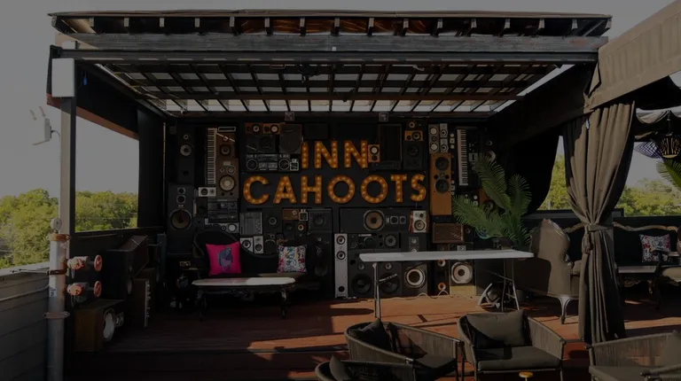 Really enjoyed this beautiful rooftop bar. The elusive front door is fun with a kind doorman. The walk to the elevator could be better during the day (just to ensure it's darker).Once you walk out of the elevator area, you're greeted with such a beautiful view of the downtown Austin skyline. There are lovely covered cabanas on one side of the rooftop and then open seating on the other half.Only negative about this spot is that it is HOT up there, especially during August. The cabana area has a drapery roof and so does the bar area, so you can escape the sun. But know that if you do want to enjoy the sun, the furniture is black, so it'll be very hot.Don't miss the neat photo opp with the "Inn Cahoots" sign surrounded by musical-inspired decor surrounding it on the wall.I did not get a chance to get a drink this time but I plan to return to check out their drink menu!