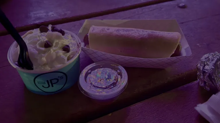 I love this concept! Warm pancakes and ice cream with toppings! We got a peach flavored one to share and it was all we needed after dinner to end the day happy. Definitely looking forward to coming back to try other flavors. Unfortunately only 3 were available at the time we visited... The bacon boy looked good..This location is in a food truck park with plenty of options for dinner, pre-dessert, if desired.Also, in the summer they have misters to help cool the seating area off, which was a relief.Overall highly recommended for a dessert that's slightly different from the usual.