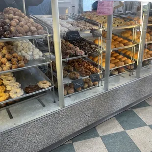 a display case full of doughnuts