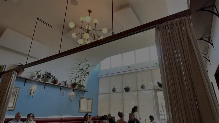 people sitting at tables in a restaurant