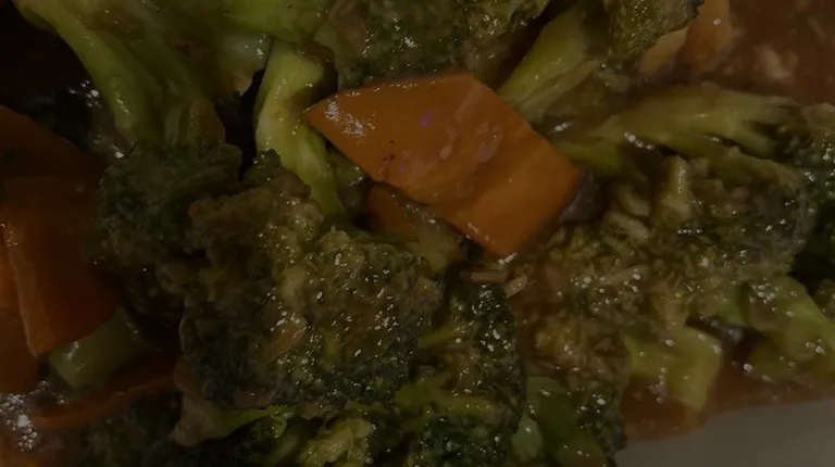 Sesame chicken and beef with vegetables. Comes with rice.