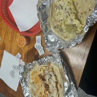 2 bacon, egg and cheese and a chorizo and egg