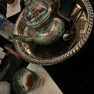 Really lovely, lowkey spot! I only stumbled upon this place. The front patio area is really pretty, the lighting is nice and dim and I think there was a live band and belly dancer last night! So cool. The back room area is dingy and dirty looking. They honestly need to make sure the entire place is well decorated, clean and presentable for paying customers! Service was really poor and disappointing. My server was rude and inconsistent. She came to check on us a total of two times and then came back to say "are you done? We need the tea pot and glasses" this was extremely unprofessional and rude!! My party of 3 was shocked and uncomfortable after this. The food was good. I ordered the Shih Tawook plate, but she brought me the wrap instead at that point it didn't matter and the wrap costs as little less. The mint tea was refreshing and strong! The presentation of it was pretty. My friend indulged in hookah and ordered the passion fruit? It smelled nice. I didn't try any desserts on this visit but I definitely will next time around! I hope the owner takes hospitality seriously and improve with feedback! I look forward to returning to give this place one more shot because the vibe with other patrons was amazing! Music was good and the food quality on point. FYI there is a parking lot but it is tiny and chaotic! Park on the street