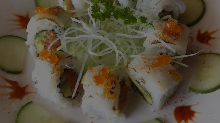 Rainbow Roll: california roll topped with salmon, tuna, white cod, red snapper, and avocado