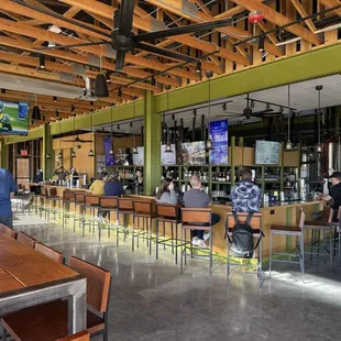 Lots of nice space for a new brewery and mostly specialized in session (lower abv) beers. Great happy hour deals and cocktail options with pizza made by a well known local chef (instellar).8-10 large tables inside with lots of outside space. Good service. Recommend the Matilda (dark lager) on happy hour (until 7 on Friday) for $4 and the special with a stout and boot of baileys for $8 on happy hour as well. Chorizo pizza was really good!