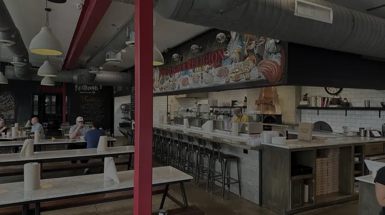 Stopped by here to get some food as we were coming to town for a wedding. Pizza here was yummy. We had 4 adults share 3 pizzas. We got the pesto, house on fire, and Brussels and jam. My favorite of these was the house on fire. It definitely had some spice on it so beware if you can't handle spicy. The Brussels and jam was a pretty close second.We had to order at the register because it was Friday night but I think at other times you can order via QR code on your phone. This helps avoid the line for sure!