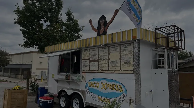 a taco express truck parked in a parking lot