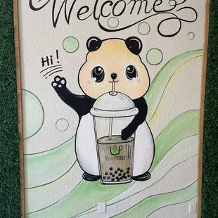 Beautiful panda mural and tables