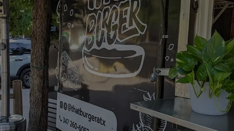 That burger is a food truck that sits on domain drive. The service is pretty standard, and the staff took about 10 minutes to make our burgers. We got "That American Burger" and "That French Burger", as well as some truffle fries. The American burger had a delicious original sauce on it, and you could definitely taste the truffle in the truffle fries. However, the real kicker was the French burger. I never would have imagined jam belonging on a burger, but the mixture of sweet and slightly sour jam added depth to the patty and meat juice in a way that caught me off guard. The only reason I knocked a star off is the price. After tax and tip, it came out to around $20 a burger, which is pretty steep. I would still recommend a visit, and if you do come I would definitely suggest getting the French burger.