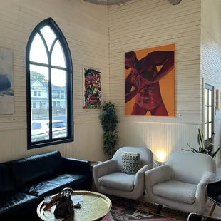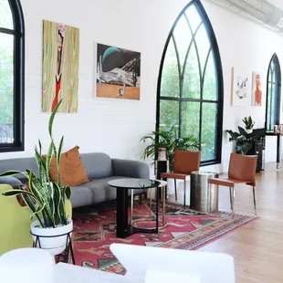I am so glad I found this place! So much character! This is an old cathedral church that has been transformed into an art gallery. What I love is that it is owned by women, and their art that is displayed are by female artists. Me and my best friend walked in on a Tuesday afternoon, and was greeted by a friendly and energetic staff member named Allison. She was eager to show us around and give us insight on the cathedral. So not only is this an art gallery, but it is also rented out as venues for weddings, private events and work spaces. Also every Thursday night, there's live music and art. We are so excited to go back!