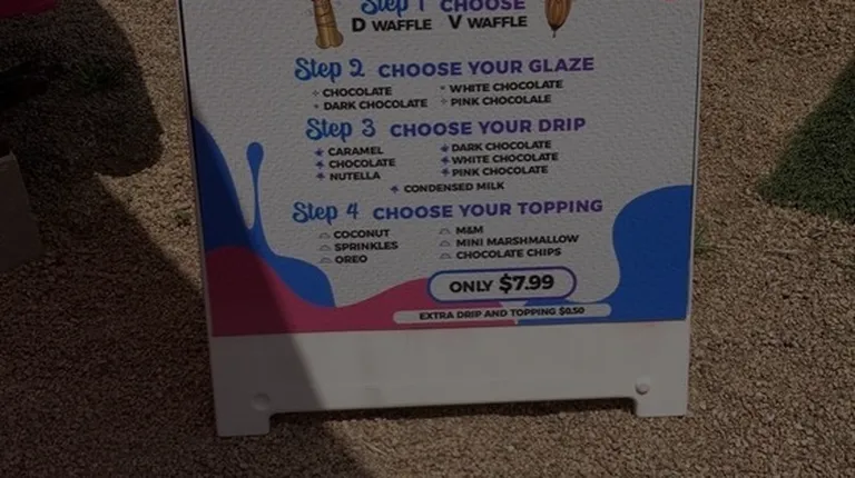 Tempting and delicious waffles. Choice of style, glaze, drip, and toppings. Extra toppings for an additional charge. Don't be shy!