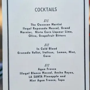 I've been meaning to check out The Long Goodbye ever since they opened a few months ago, and had high hopes! My boyfriend's parents are visiting in November and love cocktail bars, so we figured we would check out Long Goodbye in advance in case we wanted to take them there. SO glad we vetted it beforehand, because we won't be taking them here. We parked in the neighborhood and then walked over. There's really cute seating outside which would be great when the weather is cooler. There is an employee sitting outside checking IDs, which is a bit strange, but I guess given the proximity to UT campus they have to worry about underage drinkers. Inside, there is bar seating and then a corner of little tables. We arrived at around 9pm and easily found a two-top table inside. We looked around for menus for almost 5 min and couldn't find one, and nobody offered to help. Eventually, after waiting at the bar for a few minutes, we were able to get drinks. I ordered the "In Cold Blood" and my boyfriend got "Trouble in Tijuana".I normally love cocktails, but what I got was unfortunately the worst cocktail I ever had. I kept sipping more of it, thinking it might get better. I stirred it, in case that was the issue. I genuinely could not finish it, it was so bad. I hate to leave negative reviews like this, because this is really only my individual experience. There are plenty of positive things about this place, but unfortunately we did not enjoy our experience and we will not be back.