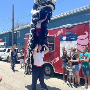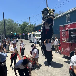 The ATX Asian Food Fest 5/29/2022 held at VUKA was fabulous! There was a great turn out. Parking was a little challenging. You could find a wonderful selection of food & drinks vendors, like Moi Vietnamese grill. Mom & Pops popsicles. Connor's creamery. Garbo's. Ding tea. Citrus refreshments. Weh? Asian fusion. Shoyu Sugar is Hawaiian grill and a favorite amongst visitors. Boba bites and tea, had their very first event and are in the process of opening their shop soon. A business to be continued, as I love their teas! Dash realty was there too with a bean bag toss, giving out balloons and candy. Cutco with their knives. Ten thousand villages had some beautiful fair trade goodies. All vendors had quite a long line. Moi's customers faced a long time in the burning Sun, but Asians love food! Weh? Sold out within 2 hours! The DJ's supplied great vibes inside the VUKA building, which is modern, spacious, air-conditioned, a great place for events. It hosted the space for a Limbo race, and crafting paper fans by 'open eyes beyond border' for the Lil' ones. The event would take place all day, and it is a hot day. A great event! The dragon dance was very much entertaining. People had their dollar bills ready! Oh, how we love to feed the dragon to get luck and prosperity!Yes, yes, Chinese dragons are believed to have control over water, rain, hurricanes and floods. They also represent power, strength and good luck. The Chinese believe that performing the dragon dance during festivals and celebrations drives away evil spirits and ushers in good luck and blessings for the community.