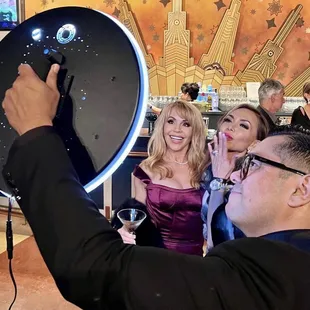 Our host roams around the venue capturing memories of guests with our roaming photo booth. Book with us. This is the way!