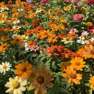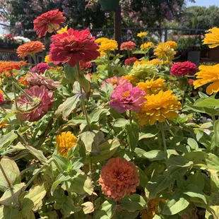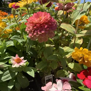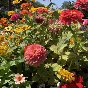 Butterfly bush (center) and a mix of marigolds and zinnias all bought at Agape.