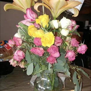 If you want day old flowers, want to be yelled at and hung up on this is the place for you! You'll get a confusing voicemail and try to call the business back only to find that it's the owners cell phone and he doesn't answer. Then he'll call you back, talk over you, ignore your requests only to do what he wants, and interrupt you to and yell "let me finish!" Oh and your enthralling experience doesn't stop there. You'll get a call back where as soon as you answer it's just the owner yelling in your ear. Super fun time. I got lectured on why he isn't rude, it was a good laugh. He also refused to tell me what he did with the flowers after my mom didn't answer the door. He only told AFTER he was done explaining all the reasons of why he wasn't rude and that I don't know the area ( I do). He's a mental case. Had these flowers ordered through Teleflora. I complained to them and after several emails back and forth I got my full refund. DONT USE THIS FLORIST OR TELEFLORA. Teleflora is aware of what a D bag this guy is and continue to partner with him.