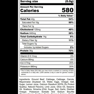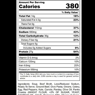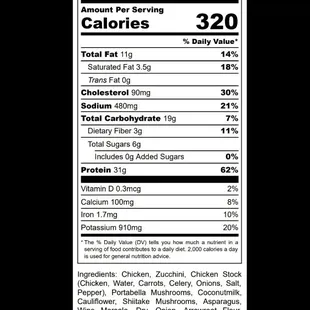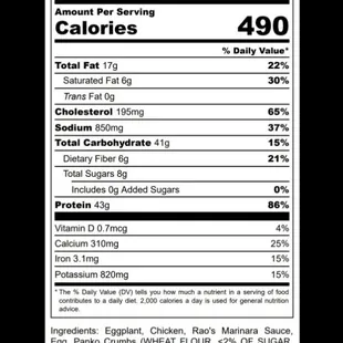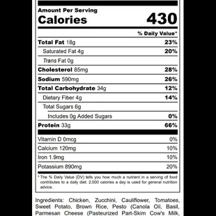 This weeks menu along with the nutrional facts