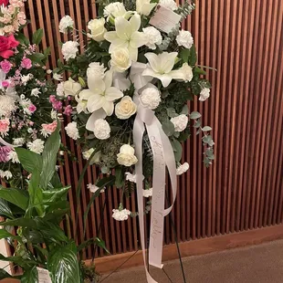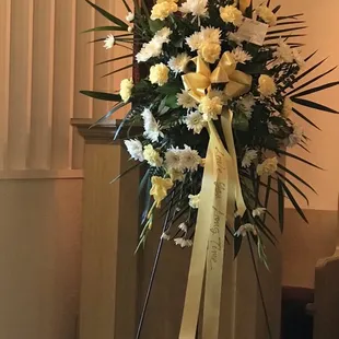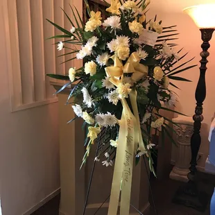 Thank you so much! Your arrangement exceeded more than we could have imagine. The personal touch on the ribbon was heartfelt and we appreciated you for accommodating our message for our Aunts funeral.