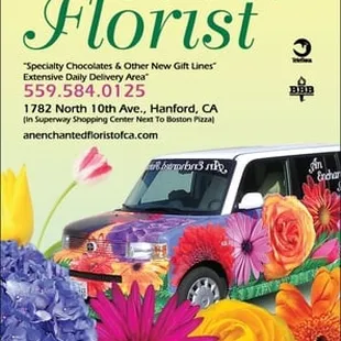 Ordered some flowers to my aunt in Hanford. I live in San Luis Obispo so I am beyond satisfied with An Enchanted Florist for working with me on the delivery time and ordering just a few days in advance all online/over the phone. The picture online looks exactly like the picture my sweat auntie sent me after she received them! I cannot thank the florist at this shop enough.
