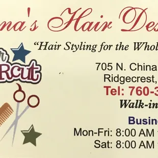 Okay this is the spot in Ridgecrest. I'm from the Inland Empire and was looking for a spot that could give me a nice skin fade. Anna's Hair Designs did not disappoint. LYNN cut my hair I usually get med fade skin on the sides and trim on top. If you're weary and not sure where to go in Ridgecrest.... this is the spot! *NOTE: CASH ONLY