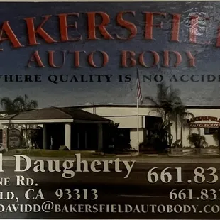 I hated that my brand new car got hit, but Bakersfield Auto Body made getting it back to mint condition easy! They are the best body shop I've ever dealt with, and unfortunately over the years I've dealt with a few. The work is excellent, and all the office staff are both friendly and helpful. This is the third time I've taken a vehicle there, and each time has been great. Dave Dougherty is super easy to work with.