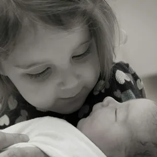 A newborn nursing with big sister watching. I caught both of these babies. A total for four babies i have helped this particular mom with.