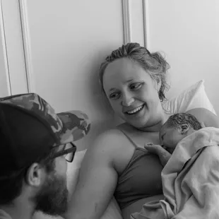 Momma, midwife & newborn after a beautiful labor & birth @ Bakersfield Birth Center. Even first time mommas can have fabulous births!