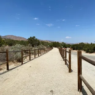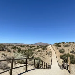 Today was my first time visiting this trail. My wife and I enjoyed it! We walked end to end. There were two fairly steep hills we weren't expecting, but the challenge was invigorating! The rest of the trail was fairly level, and an easy walk. The desert scenery is beautiful, and the trail is far enough away from roads that we didn't hear any traffic, just the wind. The trail seems well-maintained (I assume by the city). My wife and I walked the entire length in a leisurely 35 minutes, making for about an hour-long roundtrip. There are plenty of trails leading off from the main trail, too, which we'll probably check out in the future. There are also great views of the Antelope Valley at different points throughout the trail. Looking forward to future visits!