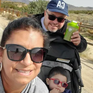 Easy family friendly hike! About 3 miles round trip. Nice dessert views. It was only 70 degrees but the sun felt intense so bring your sunblock and caps. Not much shade along the way to stop and take a break from the sun so I would recommend this as an early morning or late evening hike.