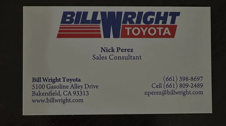 I've bought numerous vehicles from Bill Wright Toyota over the years, a Corolla, a platinum Tundra and two platinum Sequoias. Bought a 4Runner TRD in May 2024 from a different Toyota dealership because they couldn't beat the price. Went to Bill Wright this weekend to look at purchasing a loaded Tacoma and met one of the sales reps, NICK PEREZ, this guy has to be one of the pushiest/sleeziest sales reps, the kind that comes to mind when you think about a car salesman. I am a physician and have bought many vehicles, this was one of the worst salesmen I have dealt with, he started with going on and on about leaving a $500 deposit to put a hold on an incoming vehicle I hadn't even seen, which I did, he never gave me a receipt for the deposit. The final straw was when we were leaving, after I had already left a $500 deposit in the vehicle, was when I asked for the spec sheet and the interest rate/payment options we had just discussed he asks "why, so you can go shop around some more." I walked out with any paperwork on a $55,000 vehicle I was trying to buy. After that interaction, I went to the Chevrolet dealership and bought a new Colorado Z2 (which actually beat Tacoma in a head-to-head match up in Motor Trends). My wife went back to Bill Wright to get our deposit back, they then said everyone was gone that could process it but they would make a note for the people that process and that I could check back on Wednesday (it was Saturday) and see if it was processed. If you are shipping for a vehicle in Bakersfield and specifically a Toyota, avoid Bill Wright and go out of town, especially avoid Nick Perez if you don't want a miserable shopping experience.