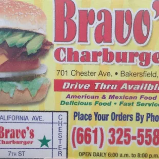 Just moved to this neck of the woods and I love Bravo's Charburgers! So far I've only had the chance to try out their breakfast burritos, but those are 10/10. I'll definitely be back in a couple of weeks.Thank you for your excellent service!