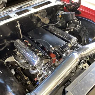 I took my 72 camaro to Jim last october to change my 4l60e transmission to a new gm performance 4l70e with a torque converter suggested by Jim. The 4l60e was older than my newer 5.3 ls type engine and required an offboard computer which was not performing the way i wanted. After fighting with the wiring that had been hacked up since 1972 We decided to rewire the entire system including my led underdash lights and underhood lighting as well as power seats, cruise control , power windows, power door locks, alarm, etc.At this point Jim suggested we go one step further and really clean up the engine bay and hide all the wires and hoses under the inner fenders .At this point Jim suggested We should have the engine bay painted. I decided at this point to go full bore and change the power plant to a GM performance crate 6.2 ls with a hot cam. Jim also changed the wiper system to a raingear 2 speed system with delay. We also changed the factory air to vintage air freeing up space on the firewall. Jim changed the inner fenders as the old ones would have taken more labor to fix than they were worth.Am i happy with the outcome? Most definitely YES!! I'm extremely happy with the quality of work that Jim and David did The engine has been tuned to perfection and performs beyond my expectations. The job took Longer than expected but I learned that meticulous quality work is better not rushed.