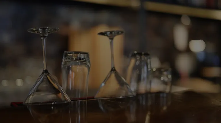 a bar with wooden tables and stools