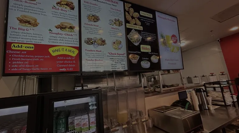 We really enjoyed Chicken Gs! We ordered the Big G sandwich, which was delicious and so were the sauces. We also got an order of loaded G fries and mac and cheese. Everything was great! The guys working were really nice. There were board games on each of the tables, which I thought was nice and they have a prayer area as well!