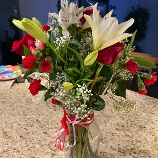 Ordered flowers for my wife on Valentine's Day they did a good job the arrangement was smaller than expected but everything was on time and beautiful
